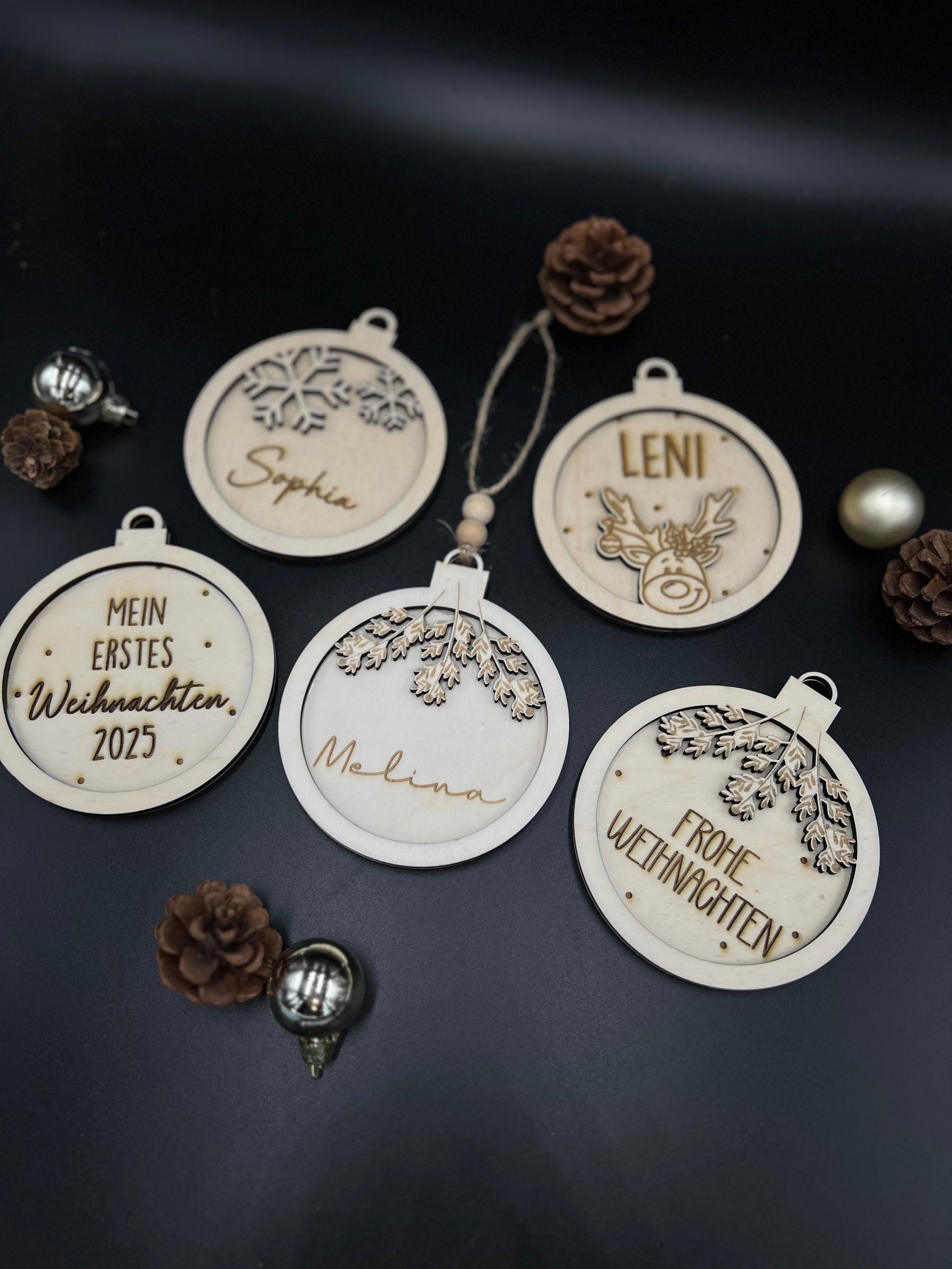 Unsere liebevoll gestalteten Holz-Christbaumkugeln bringen Wärme, Natürlichkeit und einen ganz persönlichen Zauber an deinen Weihnachtsbaum. ✨